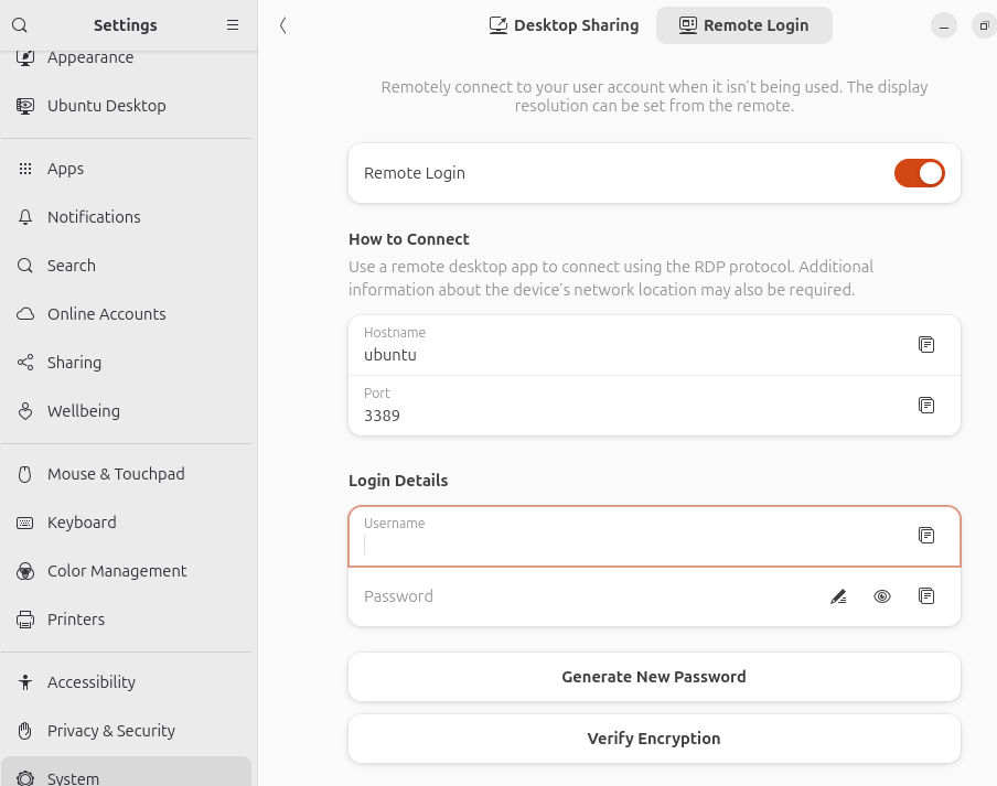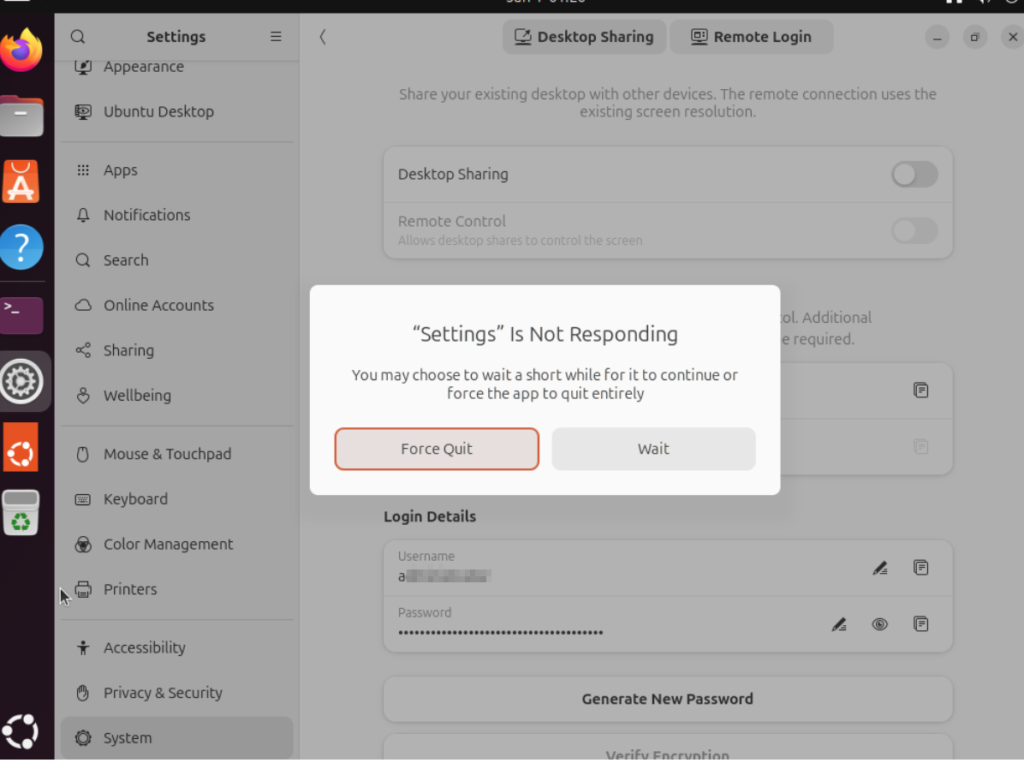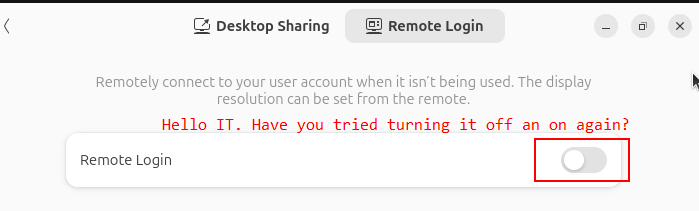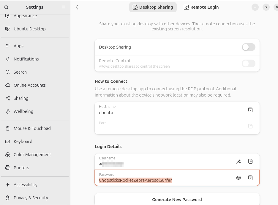 It’s not like what’s pre-entered in Desktop Sharing is tied to Linux’s system user account (login and password pair) anyway so why do it for one (Desktop Sharing) but not the other (Remote Login)? This really looked unpolished.